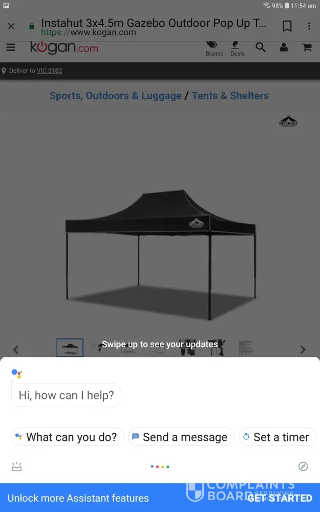 I have purchased komodo premium 3m by 3m pop up gazebo marquee tent but in return I received pop up bazebo not the tent I have send enless emails and photos to kogan having no luck resolving the matter saying it is the correct delivery and I should enjoy it not soo happy and wanting to resolve this matter asap First photo is my order second is what I got.