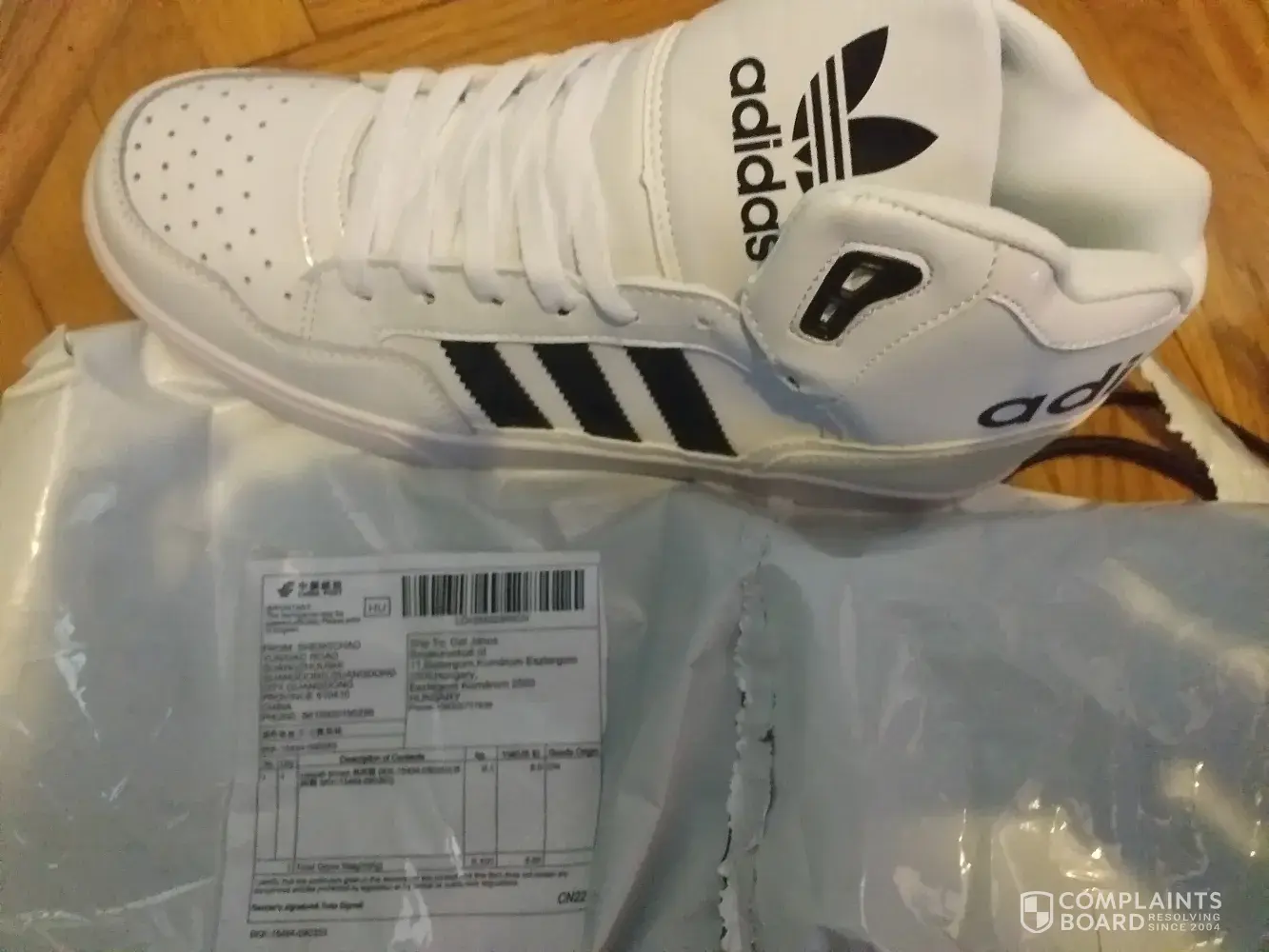 On september 2, 2019, I ordered an adidas originals forum high top brown boot men's street shoes from originals webshop.com and a low quality white plastic shoe was posted. Ther was no contact on the site, no phone or email adress. I attach photos of the site and a photo of the shoe I sent to me. I'd like to get my money or my original adidas shoes