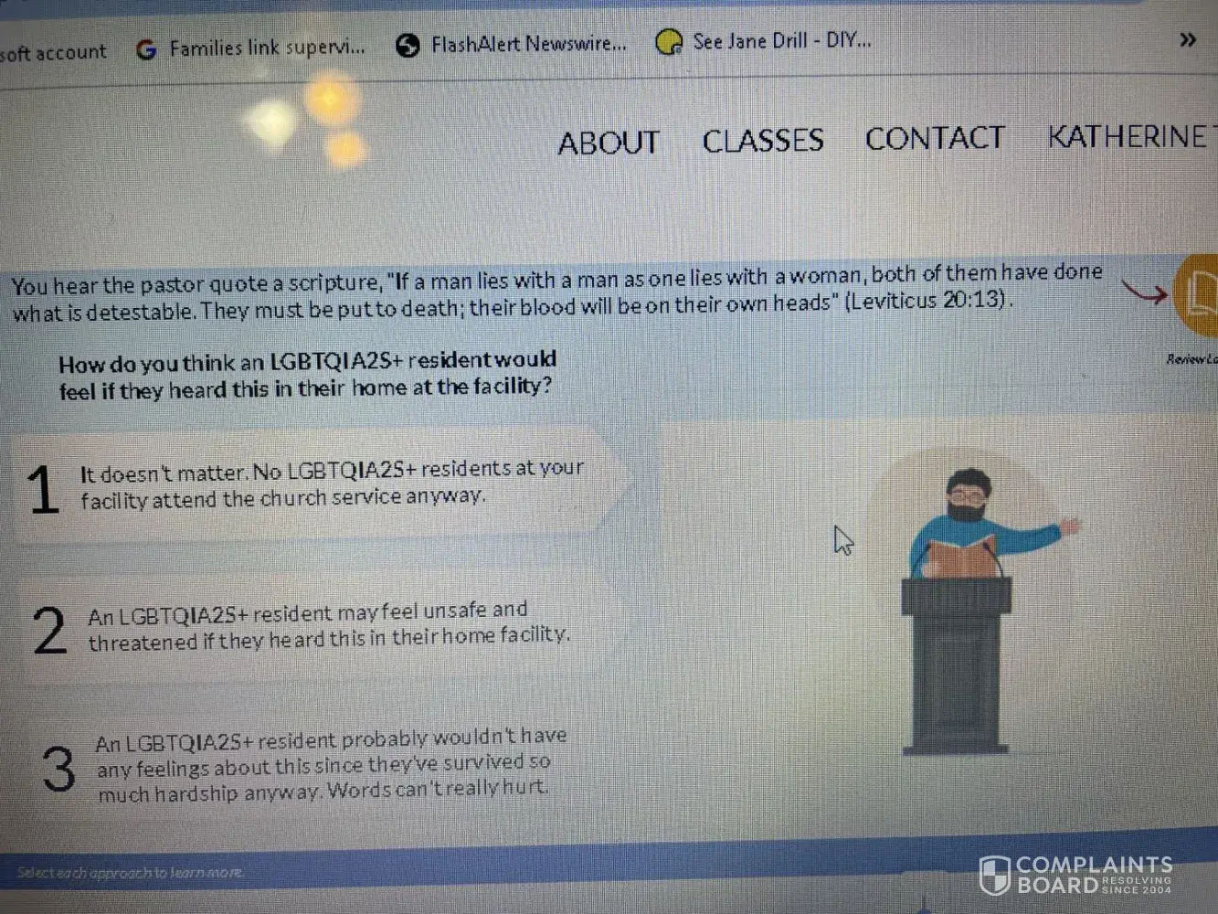 During a training video created by Oregone Care Partners I was targeted by a discriminatory interactive video slide.