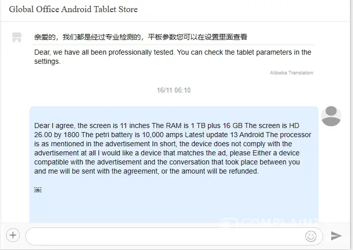 I purchased a tablet from a seller called Global Office Android Tablet Store On the website www.aliexpress.com. The order number is the order number: [protected] Order dated: Nov 3, 2023 payment method: Credit/debit card Store number [protected] This store has been open for Oct 6, 2023 Company name: Shenzhen Linghangxuntong Tech Co., Ltd. VAT...
