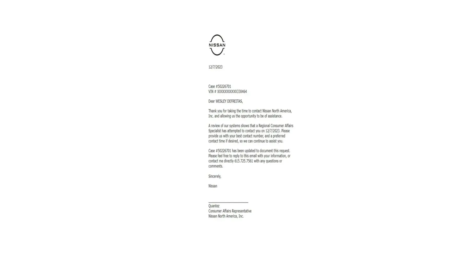 Nissan of North America refuses to provide me with a solution regarding my vehicle misalignment. I have taken my vehicle to the Nissan dealer more than 3 times to have the alignment issue resolved. My vehicle still under Nissan factory warranty. Misalignment can put undue stress on a vehicle’s suspension. This poses a risk of damaging suspension...