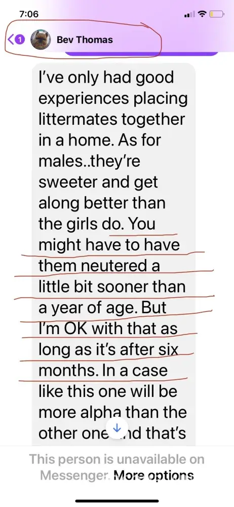 Hi, My name is Daphne Krampe. Please help me rectify this issue. I purchased 2 puppies from Bev Thomas with Mystique Brussels Griffon on Jan 29, 2021. I signed a purchase agreement on Jan 12, 2021. Her cell number is (660) 537-3177 and her email address is [protected]@yahoon.com. The puppies were born on November 16, 2020. I purchased 2 black and tan...