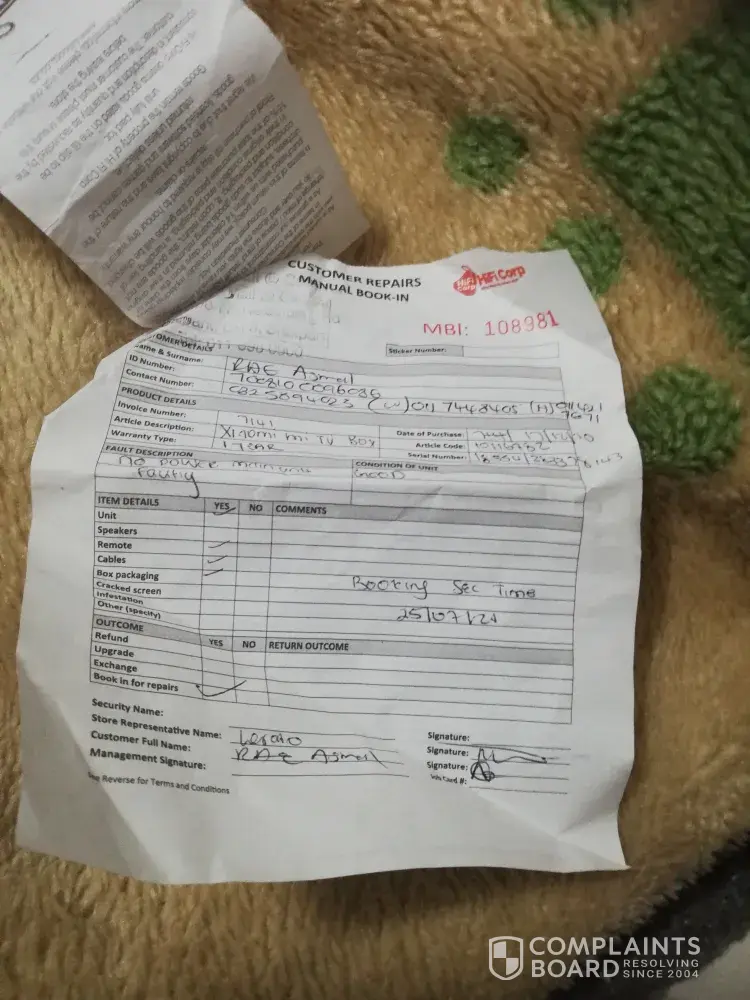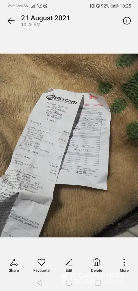 Read full complaintHiFi Corp North Rand Rd and Carnival Mall - Xiaomi tv box purchased in December 2020