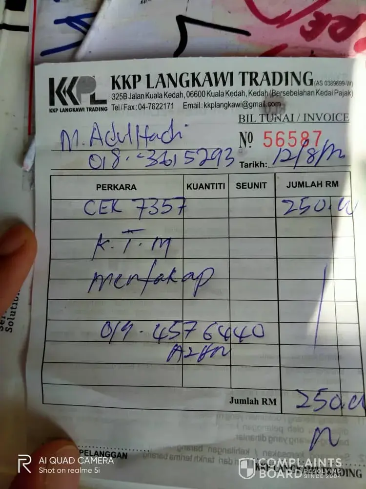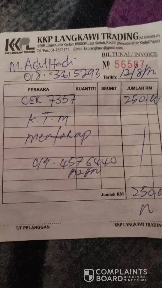 Read full complaintKKP Langkawi Trading - Penghantaran motorsikal dari kuala kedah ke mentakab