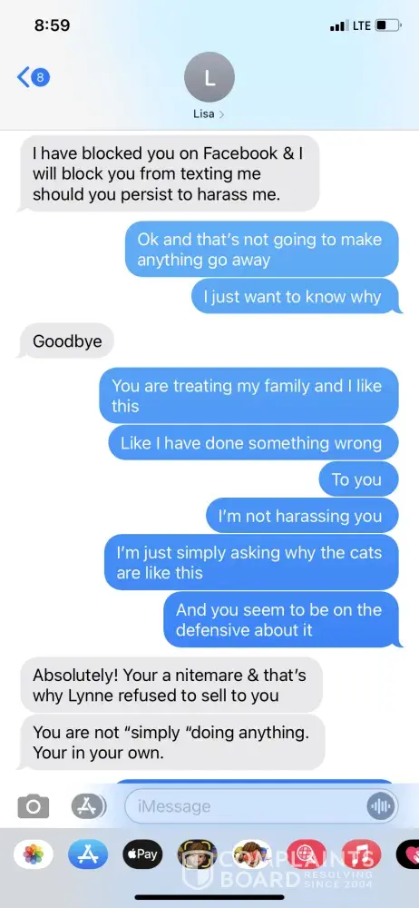 I want to start by saying how unprofessional this breeder is she sells sick cats it has been a nightmare I had purchased 2 female kittens from the same litter that had been sick for the past 4 months with explosive diarrhea my vet thinks they are inbred and they have very weak immune systems every time I try and talk to this lady Lisa dymond she says I'm...