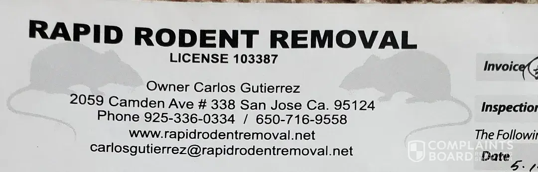 Read full complaintRapid Rodent Removal - Valid contractor license in California