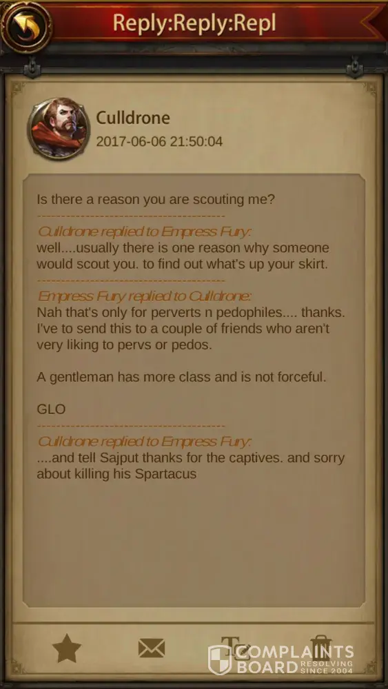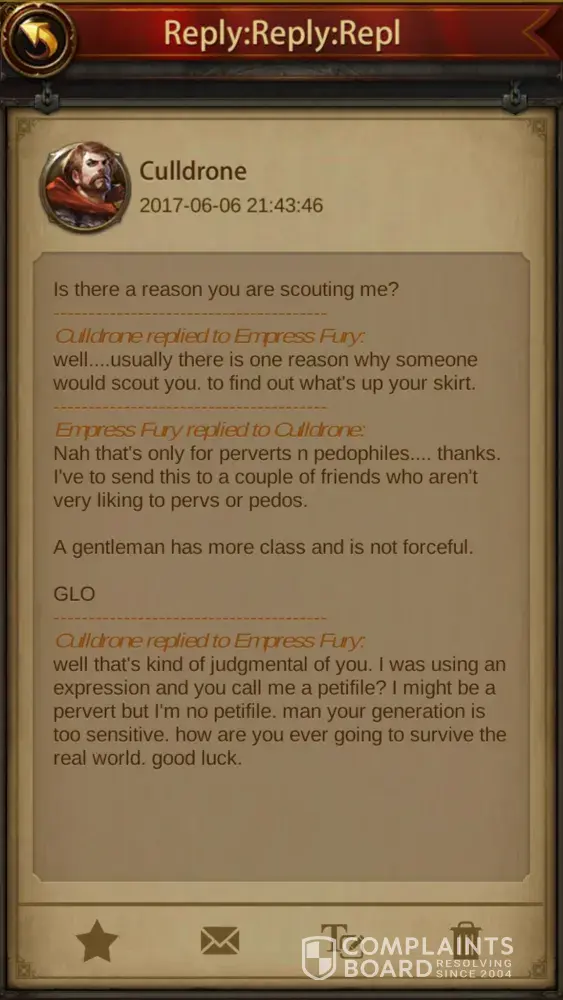 I have contacted Evony's customer service via mobile. I have complained and sent screen's of the manner in which players bully, sexually harass, and the unfair charges as well as the issues with not receiving proper rewards for the purchases. I also have mentioned to them the matter of services not working properly and the effects it has on the player. For...