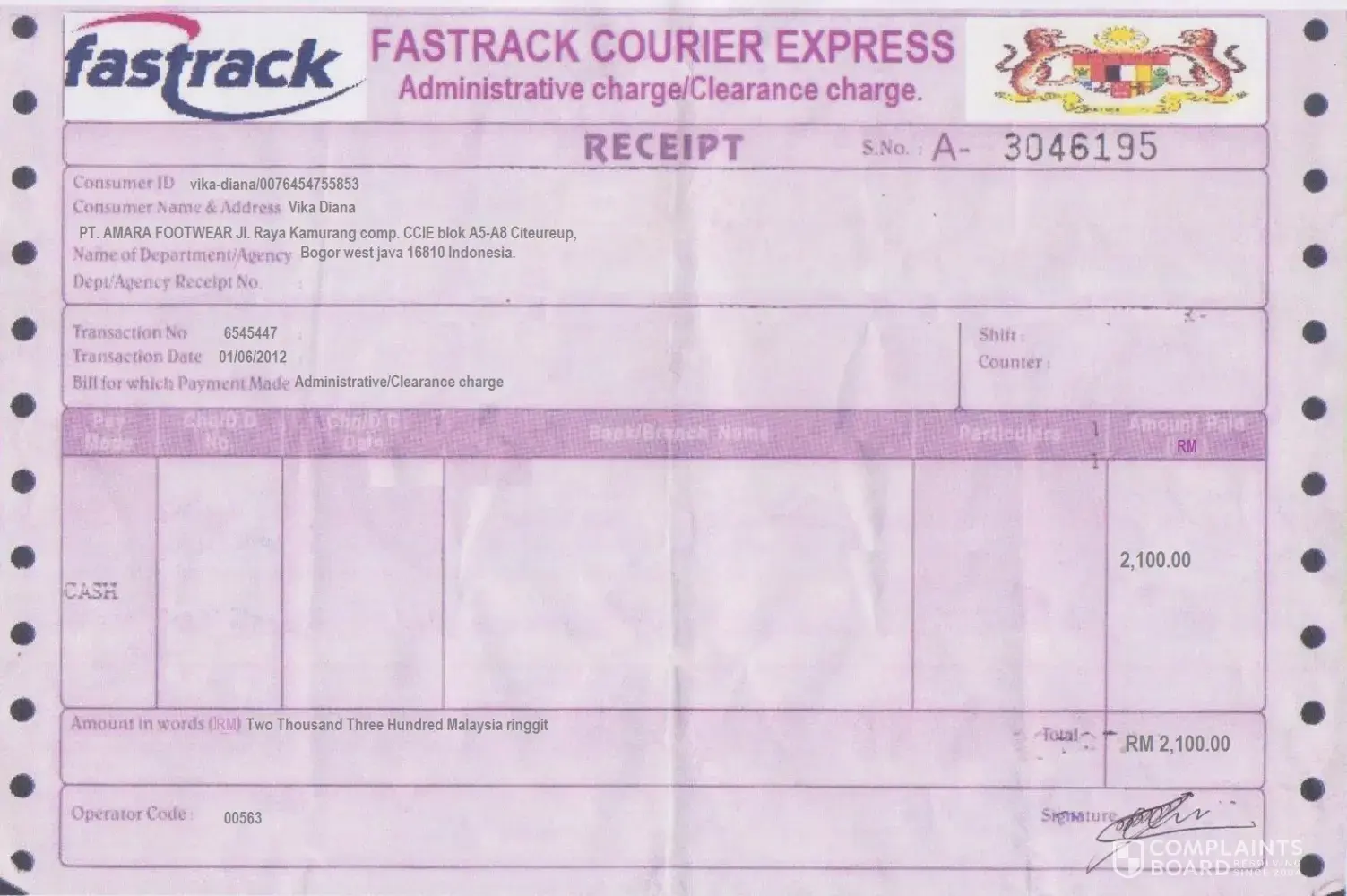 Read full complaint and 1 comment- Administration and Services