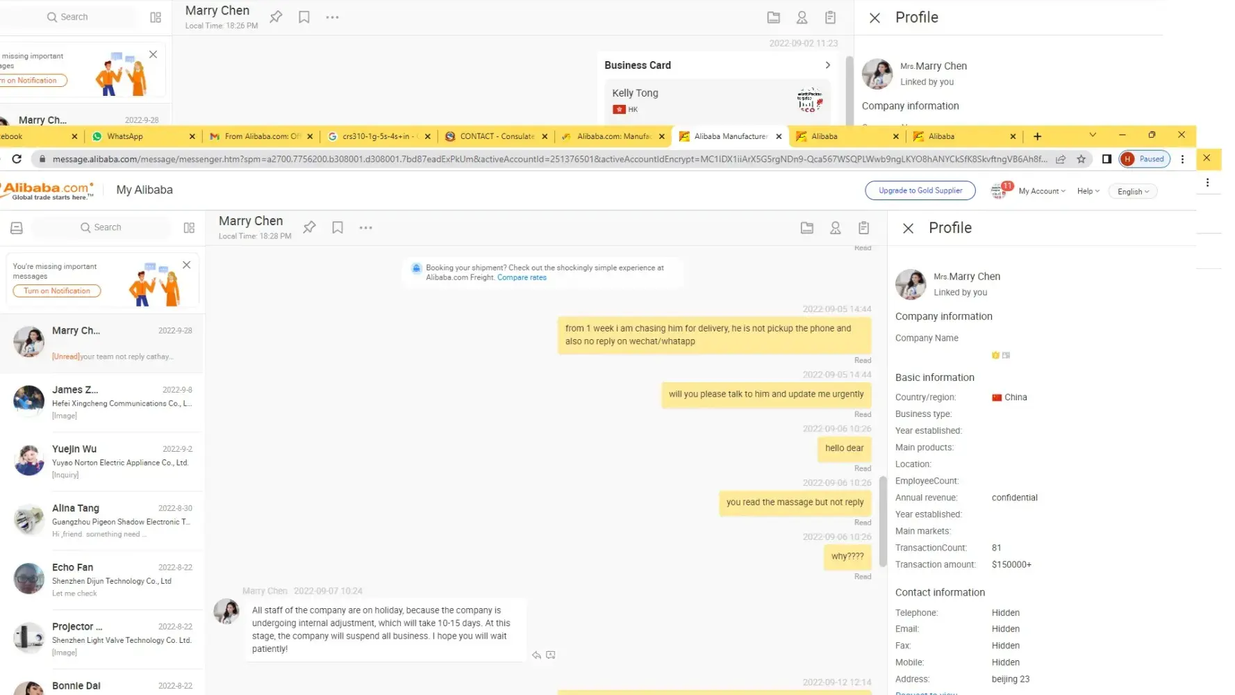 Hello Sir We need your action to recover our money from the china supplier who is unable to supply the goods We have been dealing with one company M/s XINGHE DAGUAN TECHNOLOGY CO., LTD from the last 2-3 year with salesperson Mr Mike/ Miss Cathay. Last 3-4 month they have both not replied regarding my order delivery and money refund. some of other...