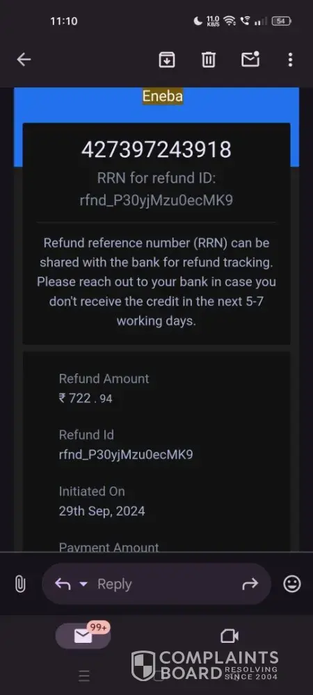 Read full complaint and 1 commentEneba Team - Subject :- follow-up on pending refund