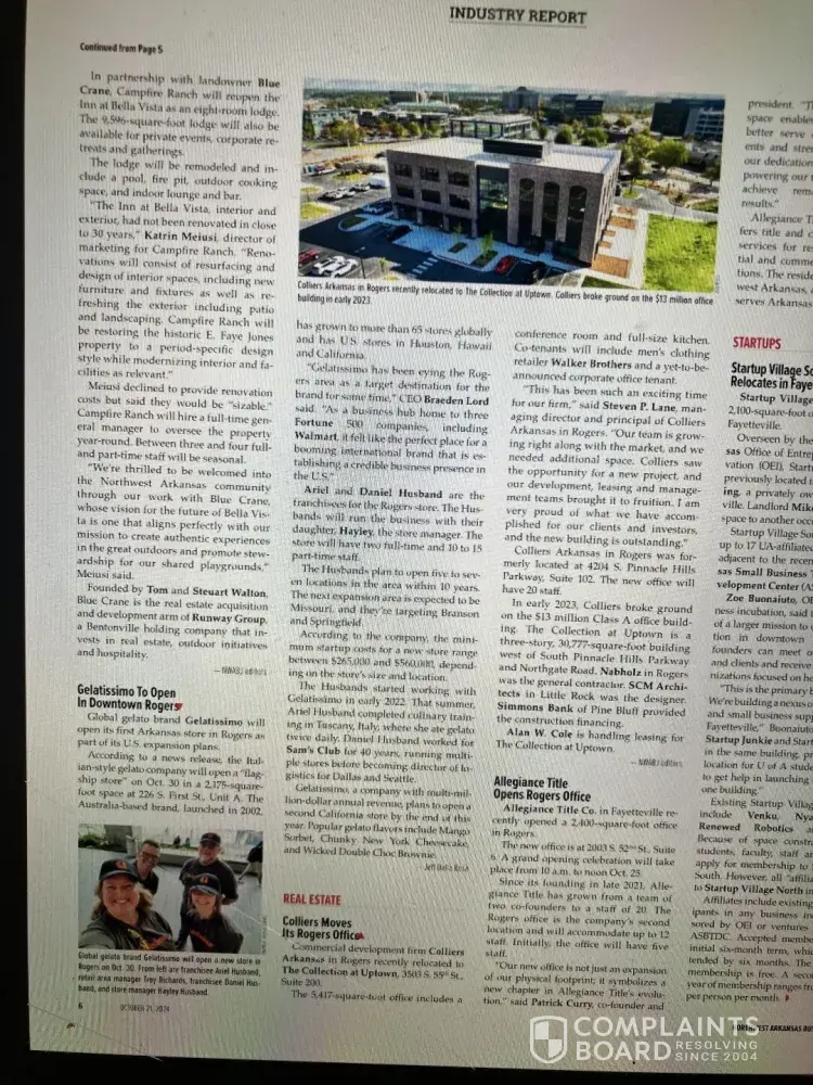 Subject: Non-Payment for Services Rendered – Gelatissimo Rogers, AR Launch To Whom It May Concern: I am filing this complaint to bring attention to an unresolved matter involving Gelatissimo, The Launch PR, and Agency owner Lynn Mooney Murray, based in Los Angeles, CA, regarding public relations services for launching the Gelatissimo franchise in...