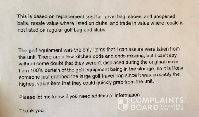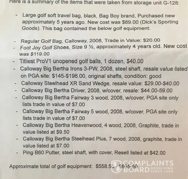 My lock was physically removed from my storage unit and my travel bag with golf clubs was stolen. It was only discovered when I revisited the unit and found that U-haul had placed a new lock on my door. I was never notified by U-haul that they had discovered a rented unit with no lock, nor that they had placed a new lock on my door. I was told by U-haul...
