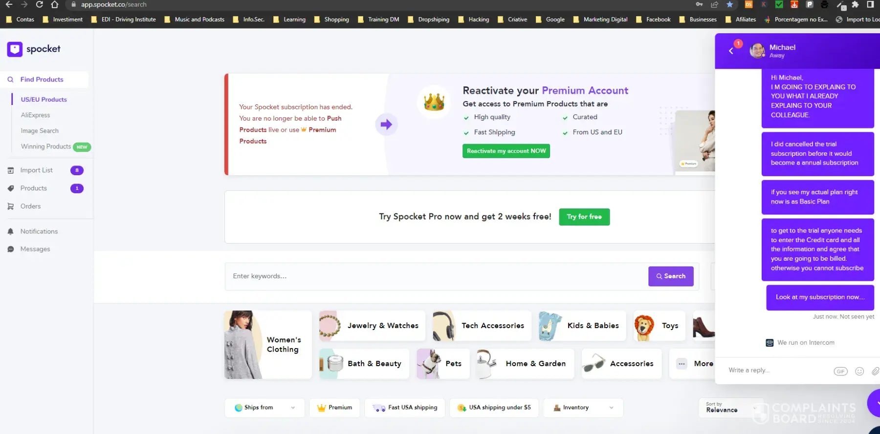 Read full complaintSpocket.co - Dropshipping vetted suppliers intermediate products