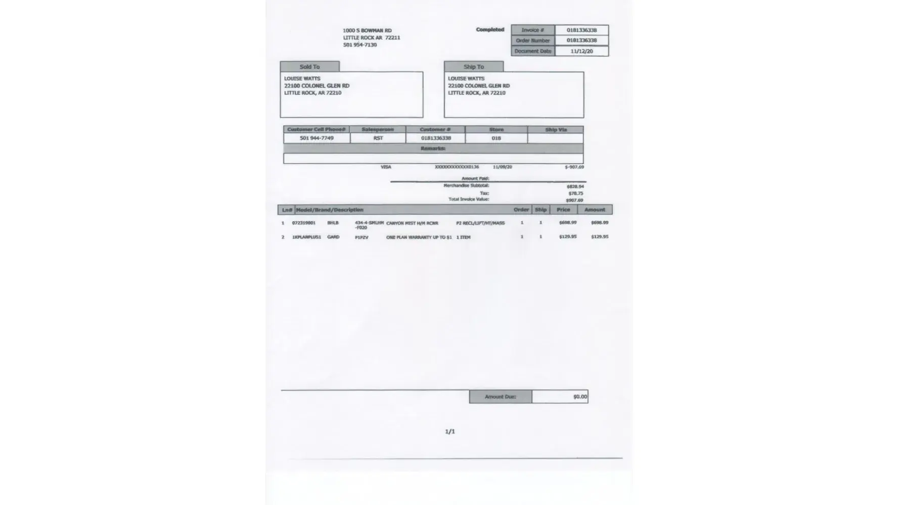 Bought a lift chair recliner from Hank's Furniture on 11/12/20 along with a warranty plan on furniture good until 11/12/2025. It is for cleaning any stains, etc. I sent all requested information that included photos of furniture, receipt for furniture & receipt for purchase of warranty, but I cannot get this company to do anything. You cannot check claim...