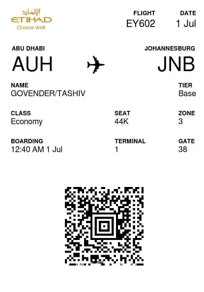 The above reference refers. My son Tashiv Govender was due to fly out from Abu dhabi airport on the 1 July 2022 at 1:40 am to Johannesburg South Africa. He completed his diligence and checked in online. In addition to completing his verification to fly. His boarding pass showed terminal one. He arrived with the Etihad shuttle from Alain, He arrived at...