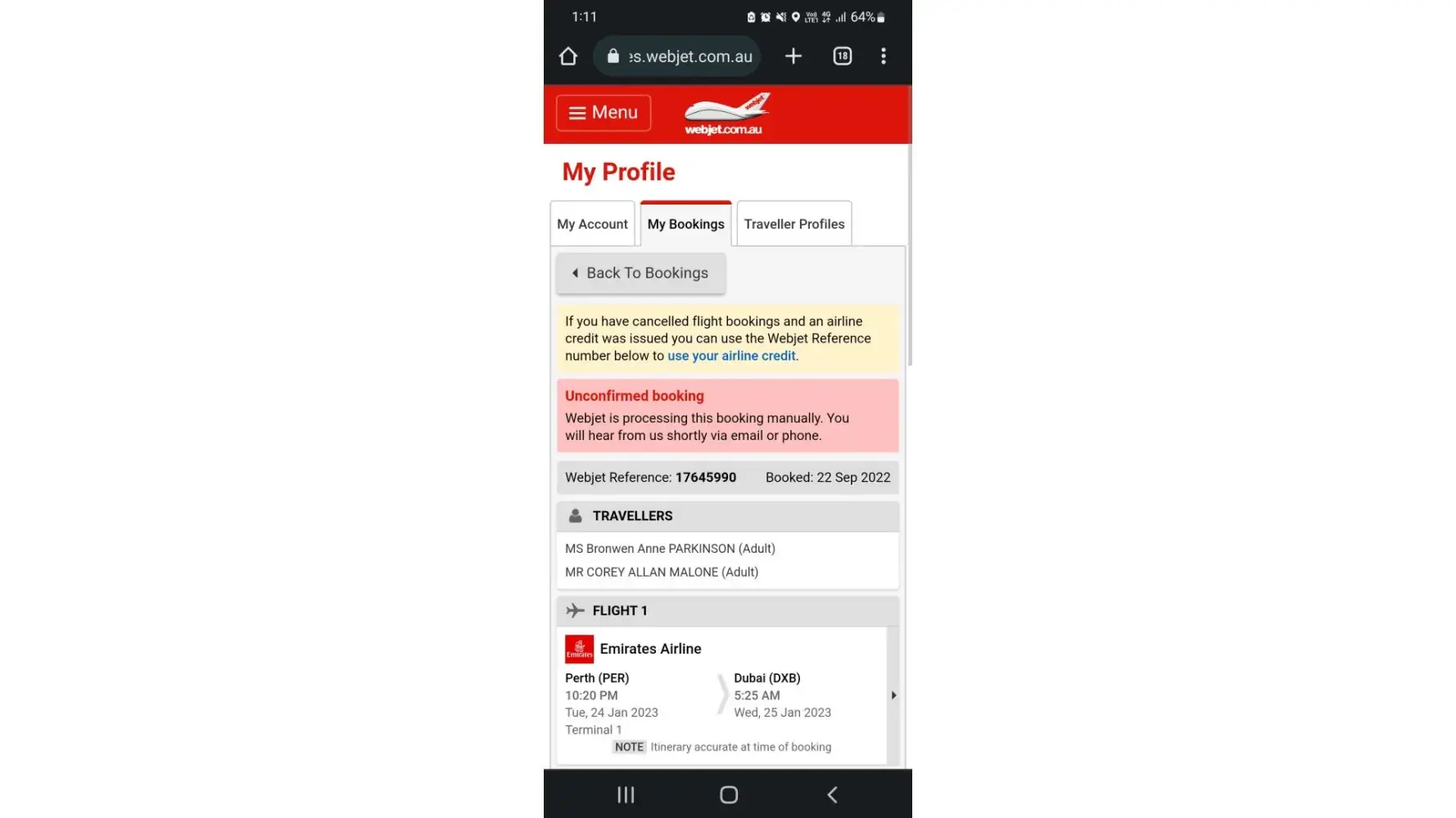 I booked flights using webjet on 22/9/22 from perth to dubai to Singapore to perth for my sons 30th surprise. The booking asked for payment details, I put in my credit card information. It processed & then came back with unconfirmed booking after taking full payment. The message advised I would hear in 48hours about the manual processing of the booking. It...