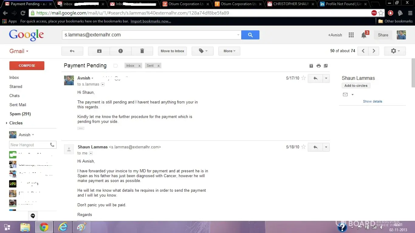 The guy who started this thread. Avnish is a guy who was in India, he touted himself to me (as an employee of ExternalHR Ltd) as being a resource he said that he had access to jobsites and linkedin and that he could find us candidates who were interested in our vacant positions. The Director of ExternalHR via myself agreed to engage the services of Avnish Jain to find a number of candidates who he would contact, confirm their interest and get their for a set fee per month. Avnish vanished for a coupled of weeks and said that he had been ill. He then simply copied and paste a few profiles from LinkedIn and sent them across to us. None of the candidates had been contacted or had any knowledge of Avnish and therefore he was not paid and the supplier contract cancelled.