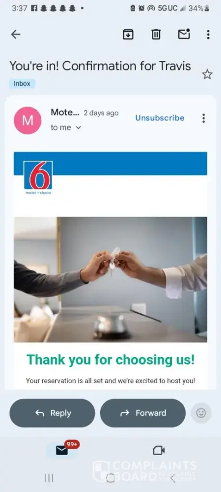 My friend went his personal phone app my 6 and paid for a room which was partner with oyo bookings. Upon arrival and after payment through app was told no reservation and used card to pay at site and still no refund for original payment through app. Then when calling sent through multiple contacts they cat find charge and now have to email guesrelations @ G6reservations.com