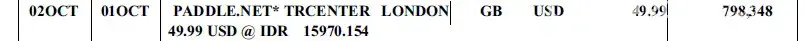 I received a charge for subscription charge at US$ 49.99 from PADDLE.NET* TRCENTER LONDON at my credit card but the email for the subscription cannot be found.