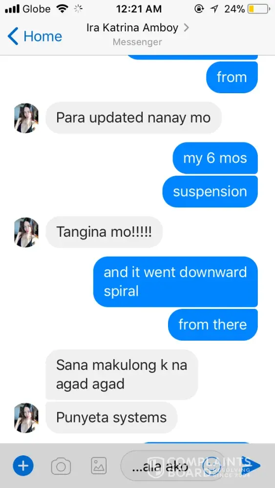 Please remove this complain. This person is simply posting online, to ruin the girls image. All of this post is Not even real, he Can be held liable for drop name and using company’s name. Please take down of this post by ixg888. The context of his complaint is Not even to be posted online but HATE.