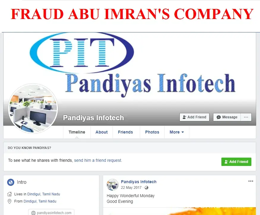Therefore, I would like to inform you that "Pandiyas Infotech" is a good company, and Abu Imran is an honest person.
