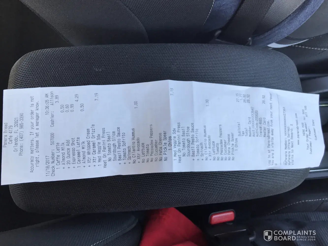 I quite enjoy the food at Panera and generally the ambiance of the restaurants. I've noticed over the last 10 years a general decline in the quality of the experience when I go to Panera. The food I think is still good, however I feel the service has gotten much worse. A feeling that has been once again reinforced this past Sunday (11/19/17).