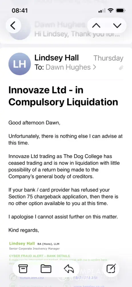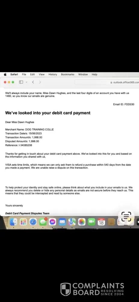 I paid £1998.00 by debit card in June 2023 and the company has gone into liquidation so I can not get the qualification I have paid for. I have already raised a complaint with you and you told me I couldn’t open a claim. Lots of students have been successful with their claims though and received their money back. The ombudsman has asked me to send an...