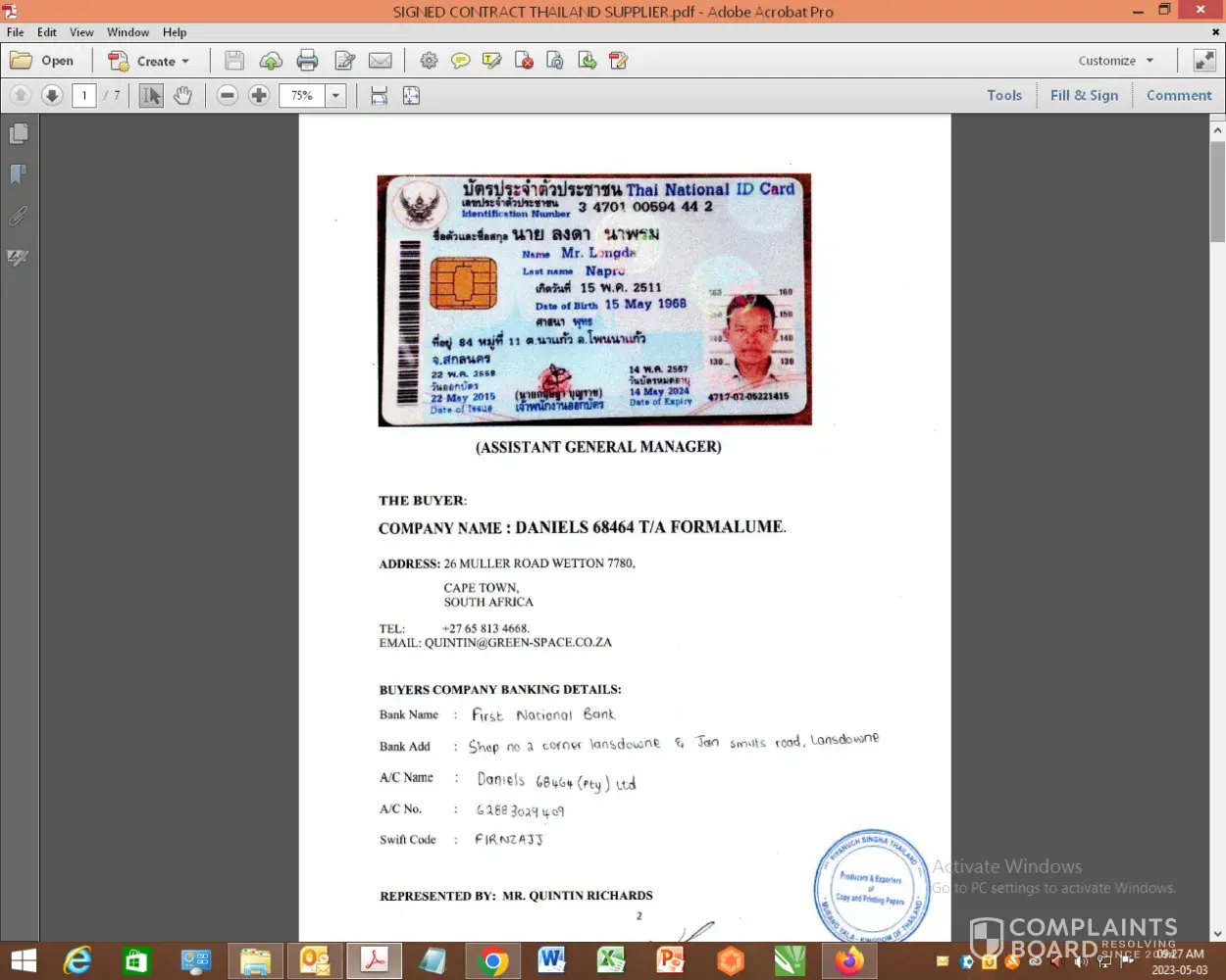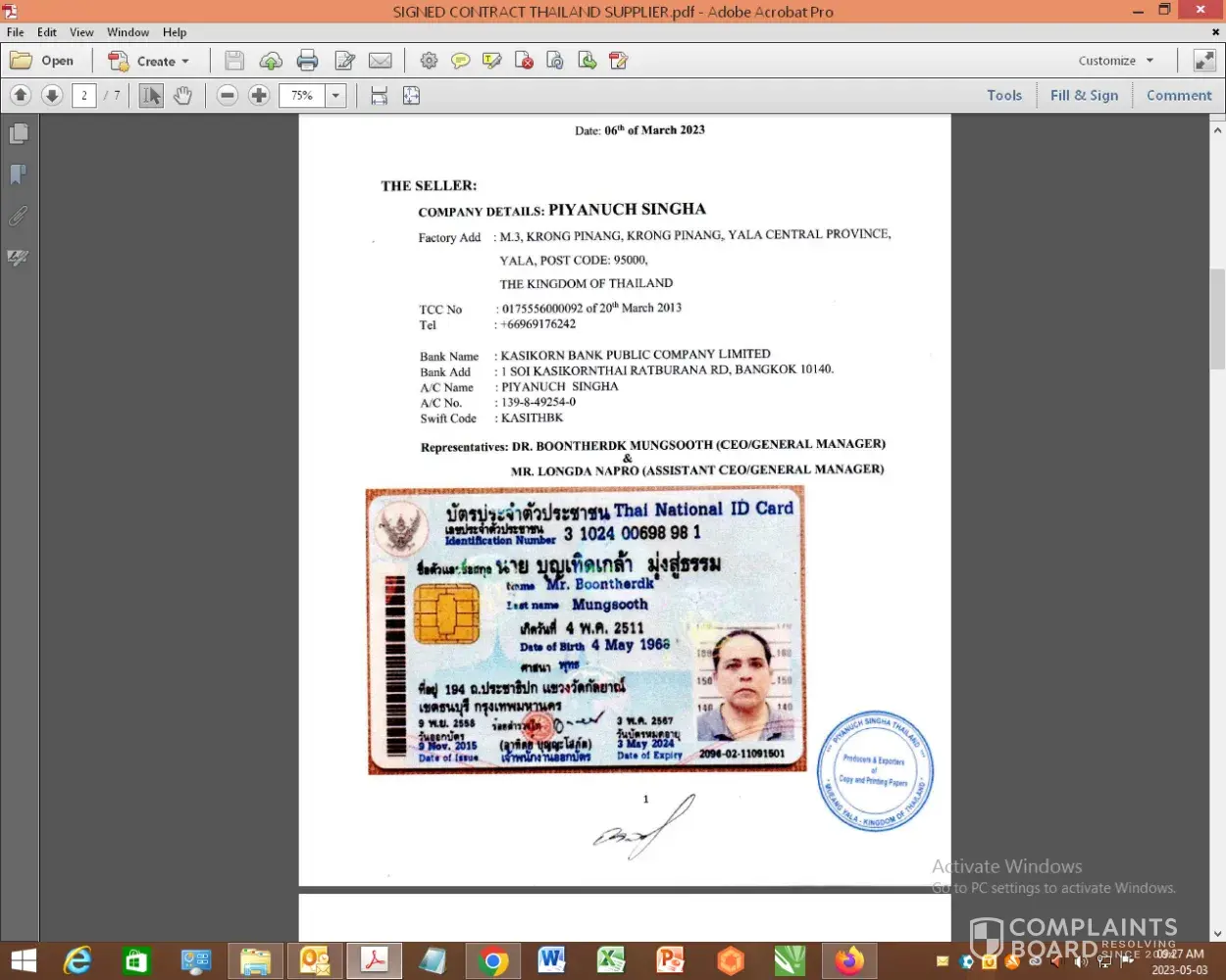 This is the I.D photos of Piyanuch Singha they sent me to sign contract as sole distributor.