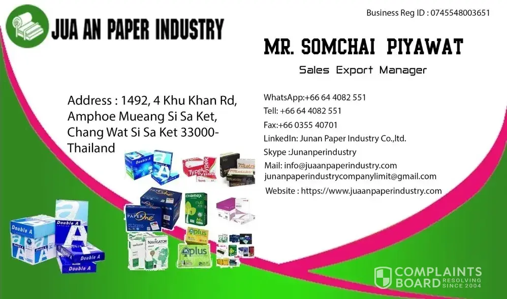 @COMPLAIN BOARD, its clear you are just one of those sites seeking to grow your popularity and seeking attention from people. You clearly do not verify information sent to you before posting. There are many people especially in Africa who use names of companies in Thailand as if they were here just to take advantage of people and later channel their jobs to their countries. We have been a victim of this too and that is why I am reporting on your post here. We have been working together with this company and how can a company be a scam and still operating till date? Please verify your information before posting online as this may have effects on potential new customers.