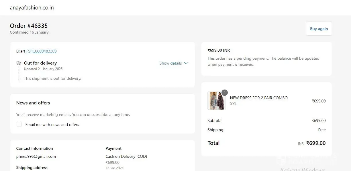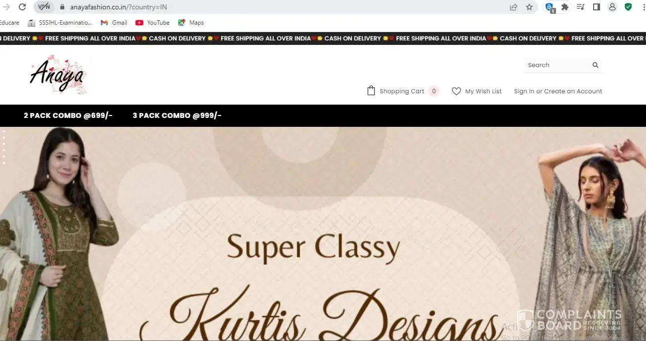 I am writing to formally lodge a complaint about a suspected fake online shopping website, anayafashion.co.in