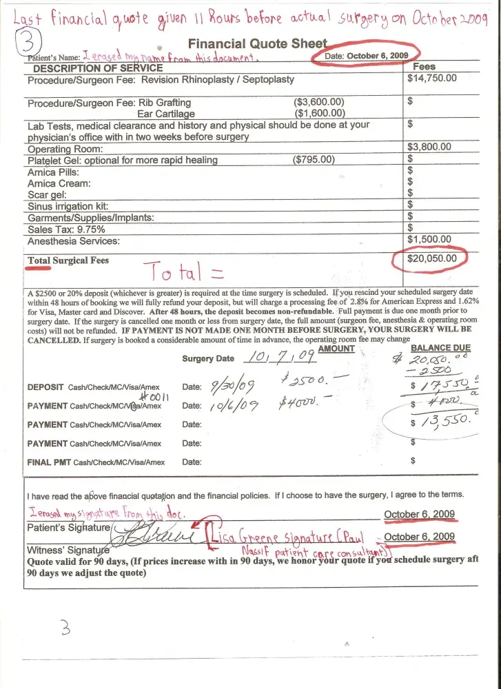 Paul S Nassif . Rhinoplasty specialist - Financial abuse.