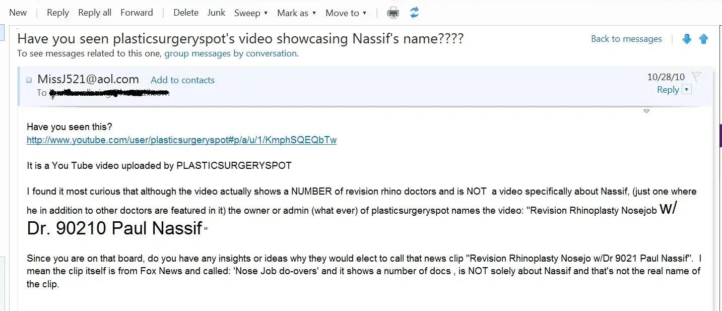 MissJ Facial Plastic Surgery message board - MissJ Vs PlasticSurgerySpot : plastic surgery message board (w/ MissJ correspendence-evidence)