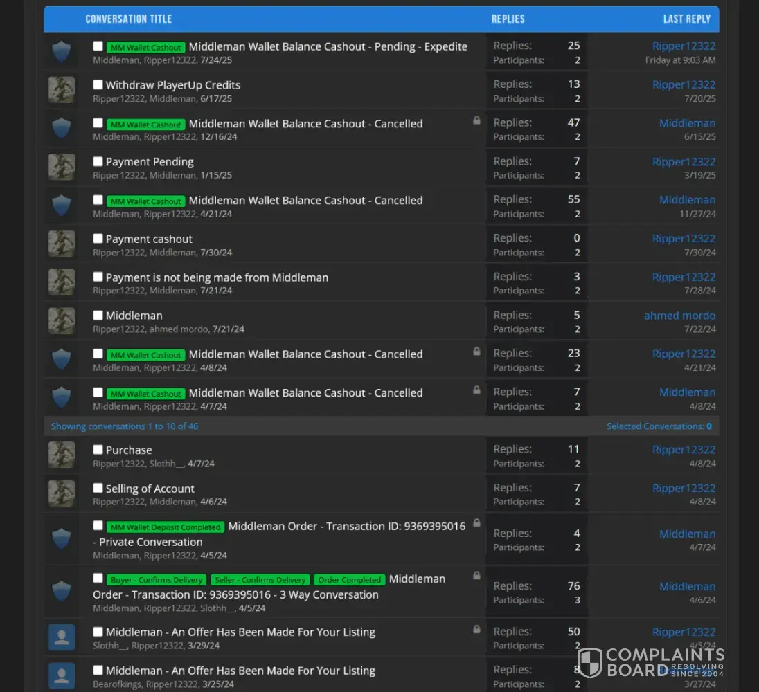 If you use Middleman services, they will waste your time, make your experience so miserable and you'll never get your money, ever! After selling my very old high quality Reddit account (+500k karma!) I have been waiting for over 2 months for them to process my payment. Initially I provided them with my PayPal information and ID, but after ignoring me for over a month, I provided 2 more payment options just in case they may have delays with PayPal. I kept asking for payment status about once a week (via PlayerUp pm, forums and Telegram) and didn't get a single response from Middleman or staff for weeks! The worse thing is "last seen 1min ago" every day I log in which means they are deliberately refusing to pay me, that and the fact they banned my posts on the forms without any feedback (my posts shows 0 visits and don't appear for me when logged out)... After I finally decided to kiss my money goodbye and wrote a bad review here, the Middleman messaged me immediately (like within 1min lol) on Telegram, he basically demanded that I delete the negative review in order to get my payment, and he made a bold claim that "my mixed payment options caused delays". Are you freaking kidding me? Still, I gave them the benefit of the doubt because 1) I need my large sum of money. 2) Middleman confirmed they finally have all needed information and that my payment shouldn't take more than 96 hours... Needless to say, that was a lie too and just an attempt to stall me even longer... And btw, the Middleman will reduce your payment again and again. If you sell an account at 1000$, the Middleman will offer you 700$ if you're lucky, and if he has to reissue you a new cashout link (which they did for me), they will reduce again to an amount they see fit... In conclusion, please don't make the same mistake as me and never give 2nd chances, they will only provide you with false hope and waste your time and energy for nothing... I logged in multiple times a day just to check if I got my payment and I was sad to see none... (Middleman, don't even attempt to fool me again into deleting this review, I won't! In fact I will write on 4-5 different places unless you give me my money, today! Also feel free to ban my account on the forum because guess what, I don't want to ever use it again!)