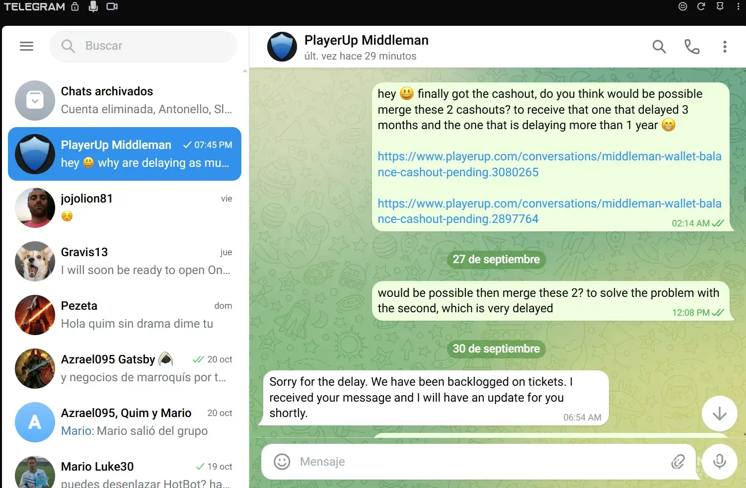 - March 2022 i sell an account for 1600$ on Playerup, Middleman must send me money after buyer have paid 1696$