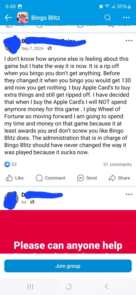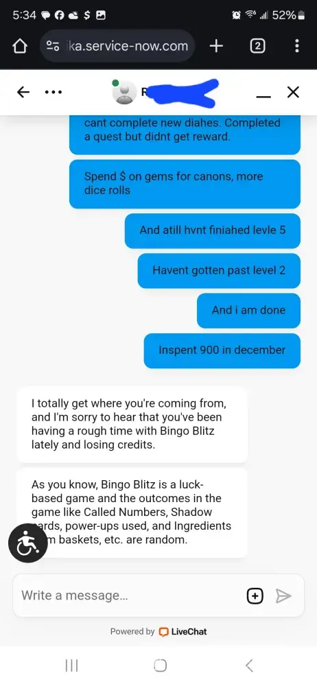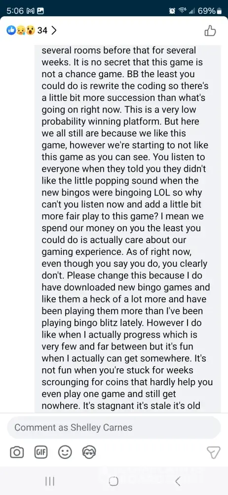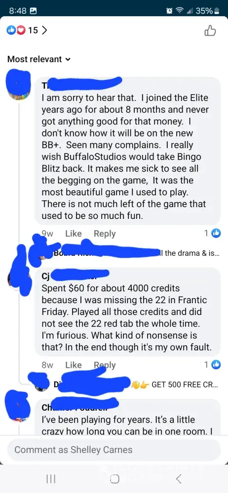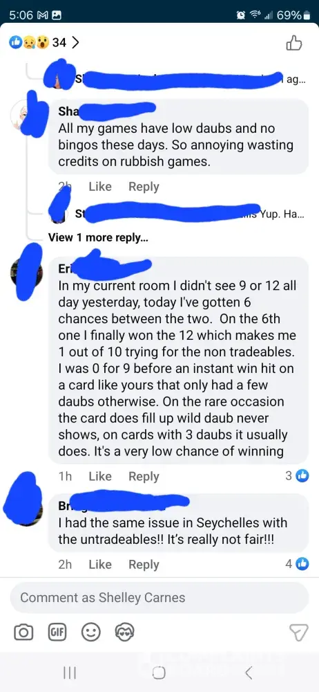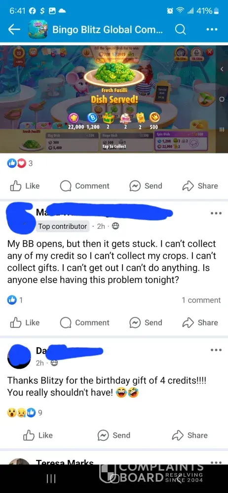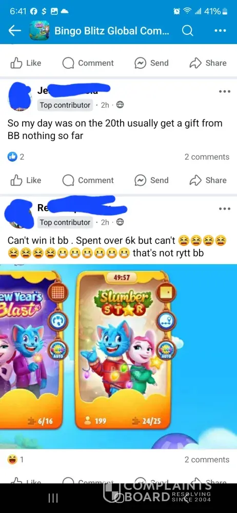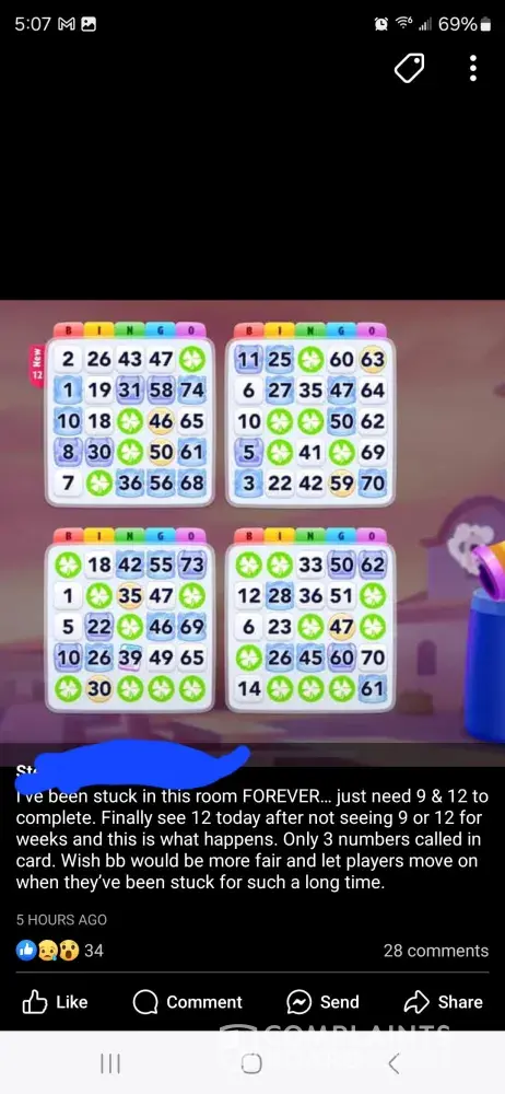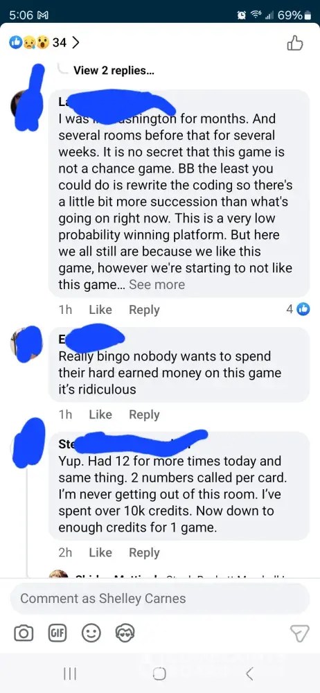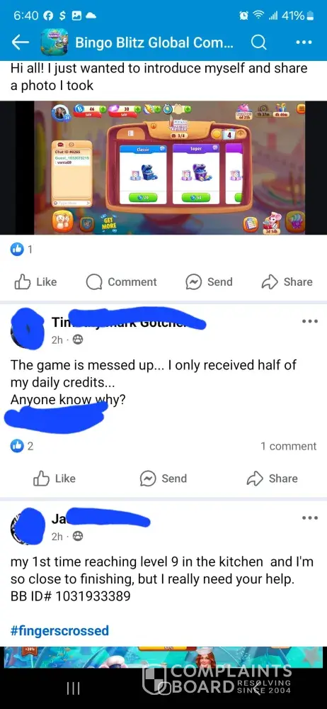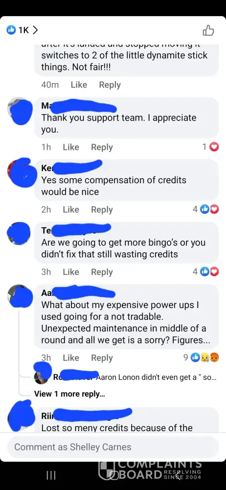 Over the last two weeks I have purchased 7,000 credits. I have been sitting and waiting for 22 in fire trunk. And over a week never seen it until yesterday. I was doing great getting bingos at least one every game until it showed up and then didn’t get even 5 daubs on that game. Not even just that the game has been kicking us out, lagging really bad, and freezing during games causing people to loose out on credits and then having to go another week before seeing the ungiftable they need to finish.. I am so tired of complaining to the worthless customer service and being credited a lousy 200 credits. The only time the game allows you to get ahead even just a little bit is if you down over $100 on their packages which are not fair. It should never cost that much for 6500 credits. That’s insane. And then customer service sends you some random message saying this is by chance which is a blatant lie. They use algorithms to pre determine your winnings. So they choose to let you win or not. Which is crap. No one should ever have to go days, weeks, or months waiting on one sticker to win a game that you don’t even win real money on. You have a better chance with slot machines than you do bingo blitz. Or go spend your money to play real bingo. thus game is not even American owned. It was bought by a Chinese consortium. This game needs to be investigated for fair game play as well as the price of the cards to what you win back in return if you down bingo. It’s completely insane to purchase cards for 150
