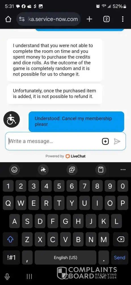 Desired outcome: RESTORE,PLEASE RESPOND,YOU HAVE STILL BEEN ABLE TO CHARGE ME FOR MY MONTHLY SUBSCRIPTION,I CONSIDER MYSELF A GOOD PLAYER 3/14/24