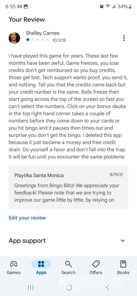 Playtika complaints: history and resolution overview