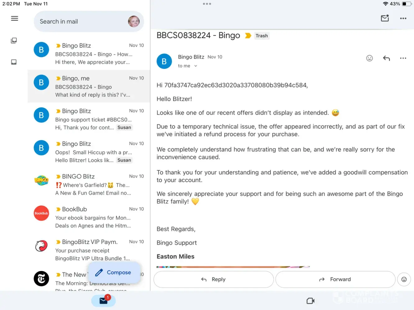 Reply from ComplaintsBoard