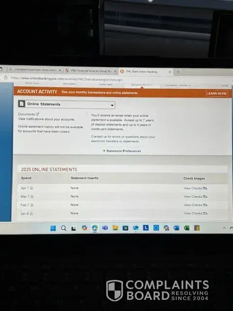 So typical of PNC bank . My account was closed at PNC because they mistaken me for some PEP person. They would not discuss or open investigation. Would not return any calls .Told me that account is closed and my 225$ are lost now.