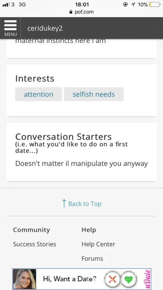 POF doesn't seem to care when users report specific users. Why have a place to"report user" when the complaints are not addressed? I know several people who have reported and blocked buttersocks, and nothing is being done. Especially when you are an upgraded member, someone who is paying money to use the site. I have decided to address my issues on social media.