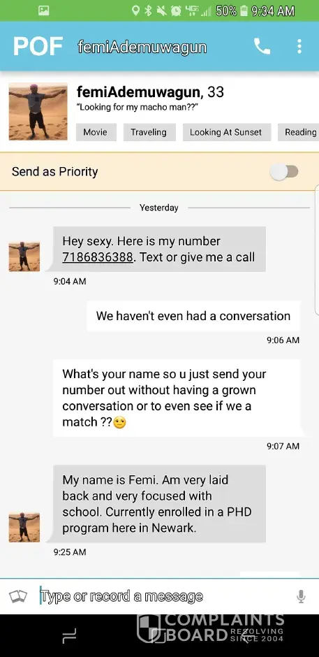 I used to use pof, I now have given up after engaging in dating with a guy hfdmatt75 for a month only to find out through a friend using pof as well that he was there giving away my name description city of residence to whoever he was chatting with, and make up sexual stories about me to make himself look interesting and me a total sexual psycho. Icomplained thrice and so did my friend nothing was done. So this guy is still in there giving my description and city of residence, slandering me through deviant sexual stories of his making. He also brags about how clever he is and use pof to find vulnerable women to abuse.