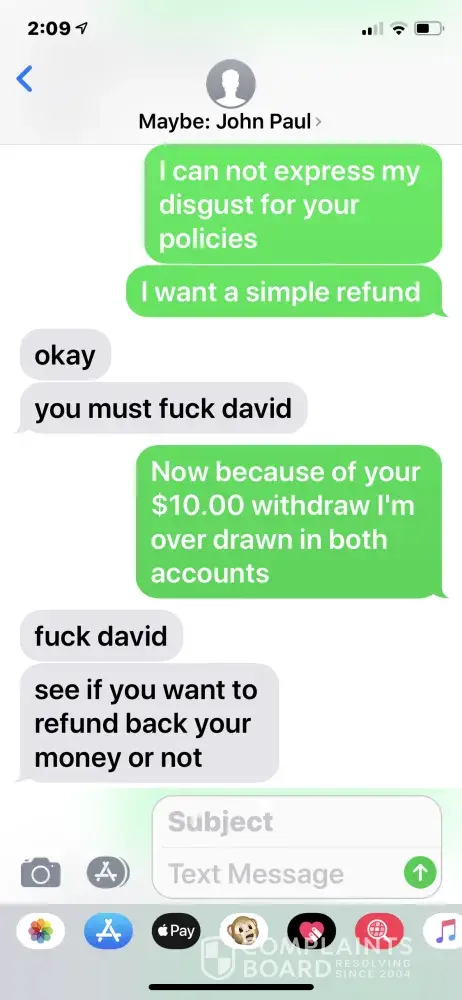 Spoke to three different men all sounded foreign . Asking for my card info saying I will be refunded via Apple Pay. I went around and around with no luck nothing they said worked. Then a man called me back said his name was David and at first seemed helpful then he said I had to open my photos and I would need to scroll through all my photos one by one to activate the refund I told him no way he told me it was the only way to get the money transferred even told me that he knows his job and if there was another way he wouldn't be taking so long. Then he told me I had to [censored] him the only way to get pairs was to [censored] him. Obviously I didn't open my photos and to say the least I was fired up.