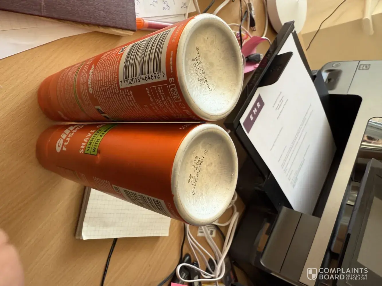 Desired outcome: Replace the tins of shaving foam or a voucher for the same, plus inconvenience costs