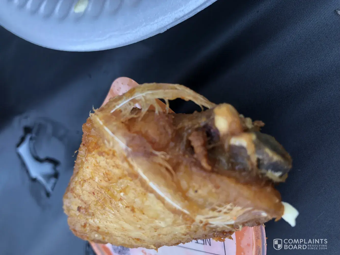 As the parents and I fed the kids today at a picnic to get all the band and color guard kids together. I noticed that there was feathers on one of the pieces of chicken. It was disgusting.