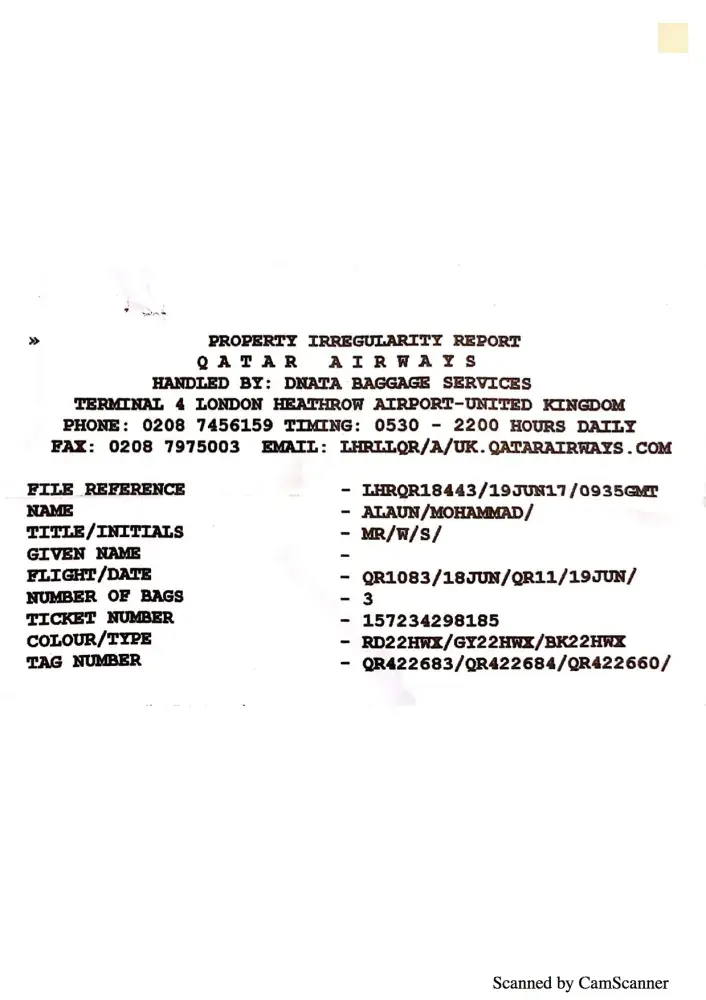 My claim still is that Qatar Airways shall pay 100% of the value lost for all other items (perfume, watch, luggage weight).