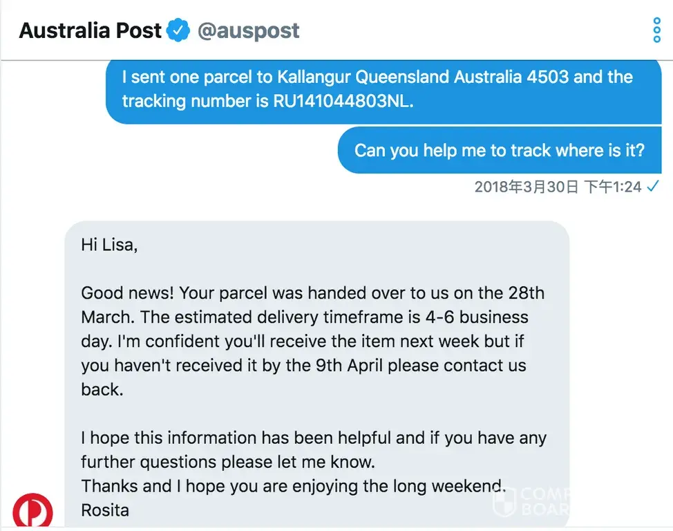Wrong The package never arrived here, I went to local post office who tracked the package to Melbourne not here in Brisbane.