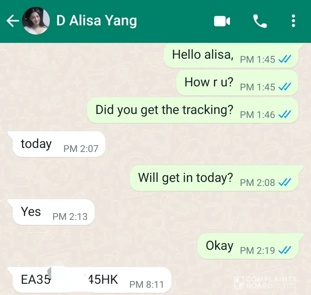They have lied about sending the order to me, they have used a false tracking number from the Netherlands and uploaded it on Libaba as a sign that the delivery had been sent.