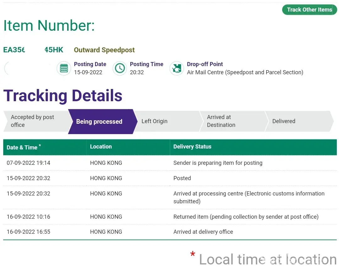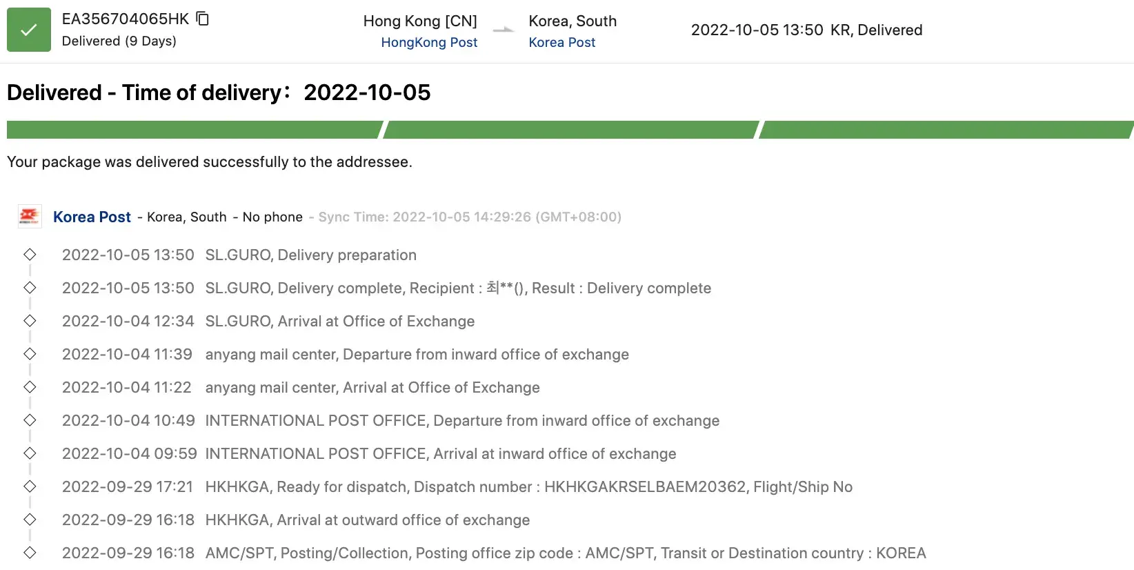 EA356704445HK(First time-tracking number,It's failed to pass the custom)