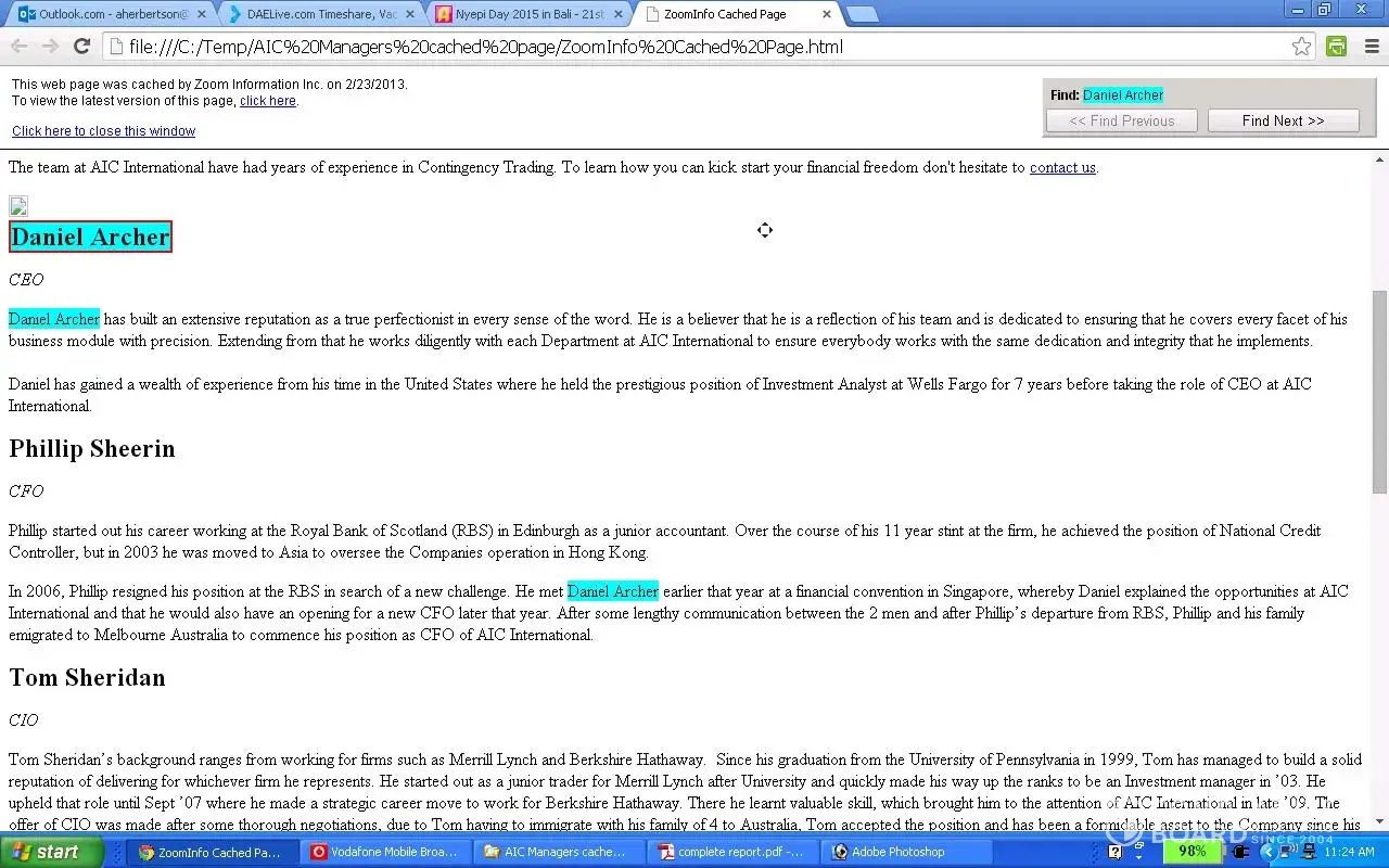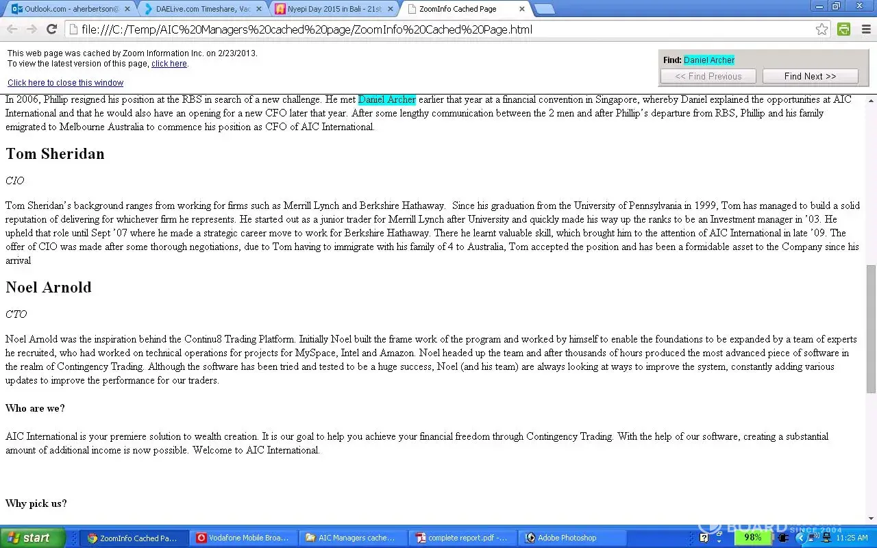 Have attached the fictitious Directors of AIC International to this - Daniel Archer, Phil Sheerin, Tom Sherridan, Noel Arnold - check out these high flyers - ALL FAKE NAMES - This is Fraud Sean O'Dalaigh (registered with ASIC as the director of AIC International)