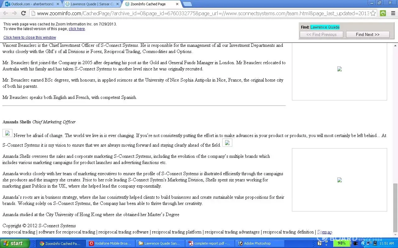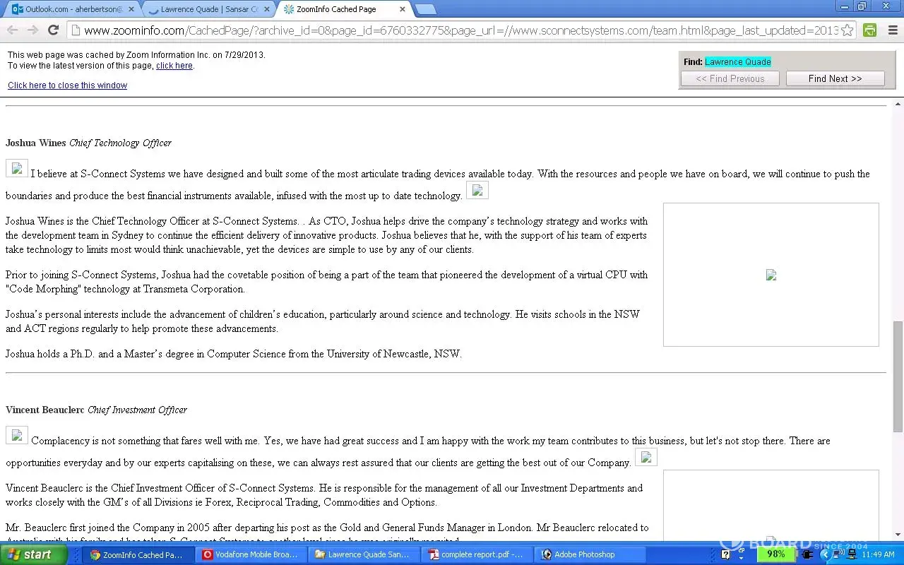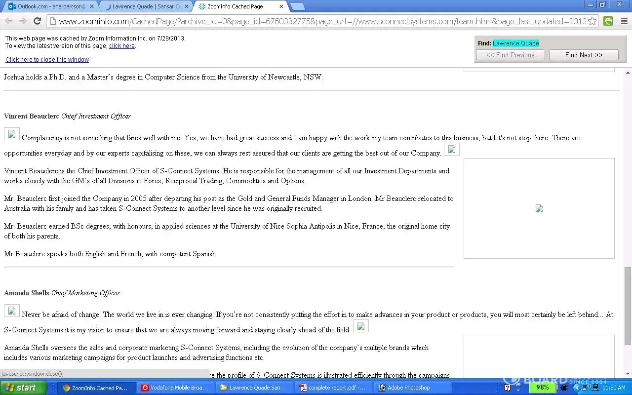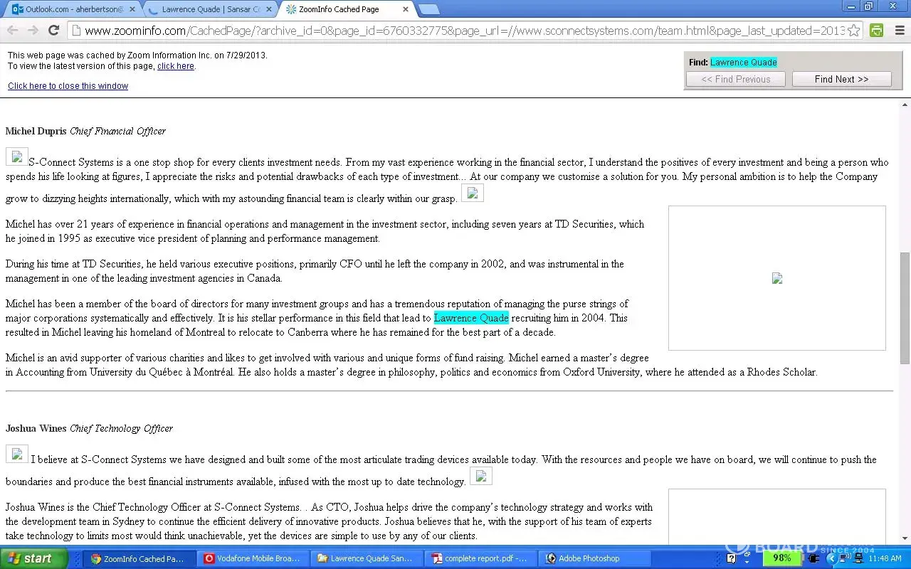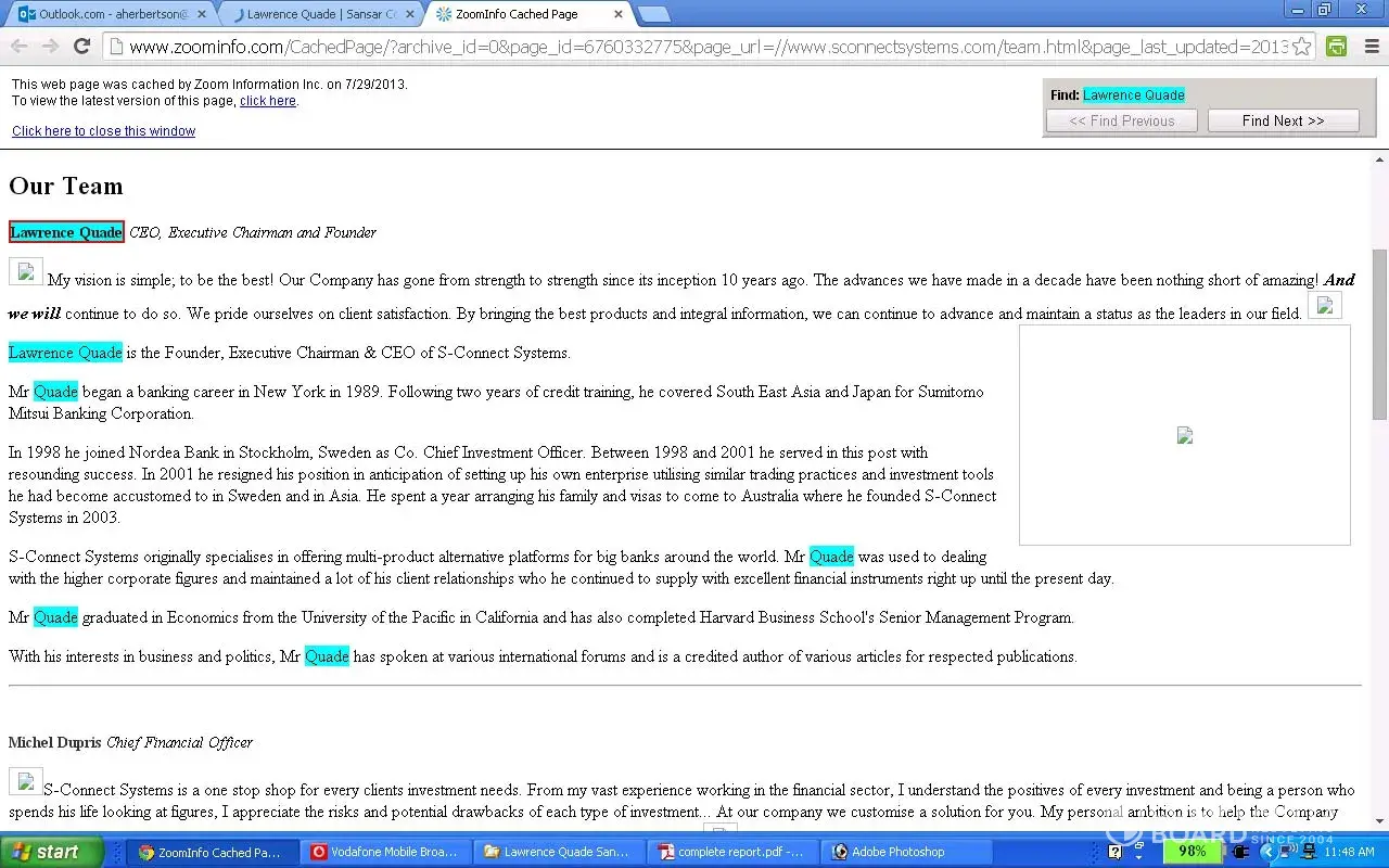 Have attached Lawrence Quades details - all made up - this is fraud Anthony Hartnett (registered with ASIC as the Director of Sansar)